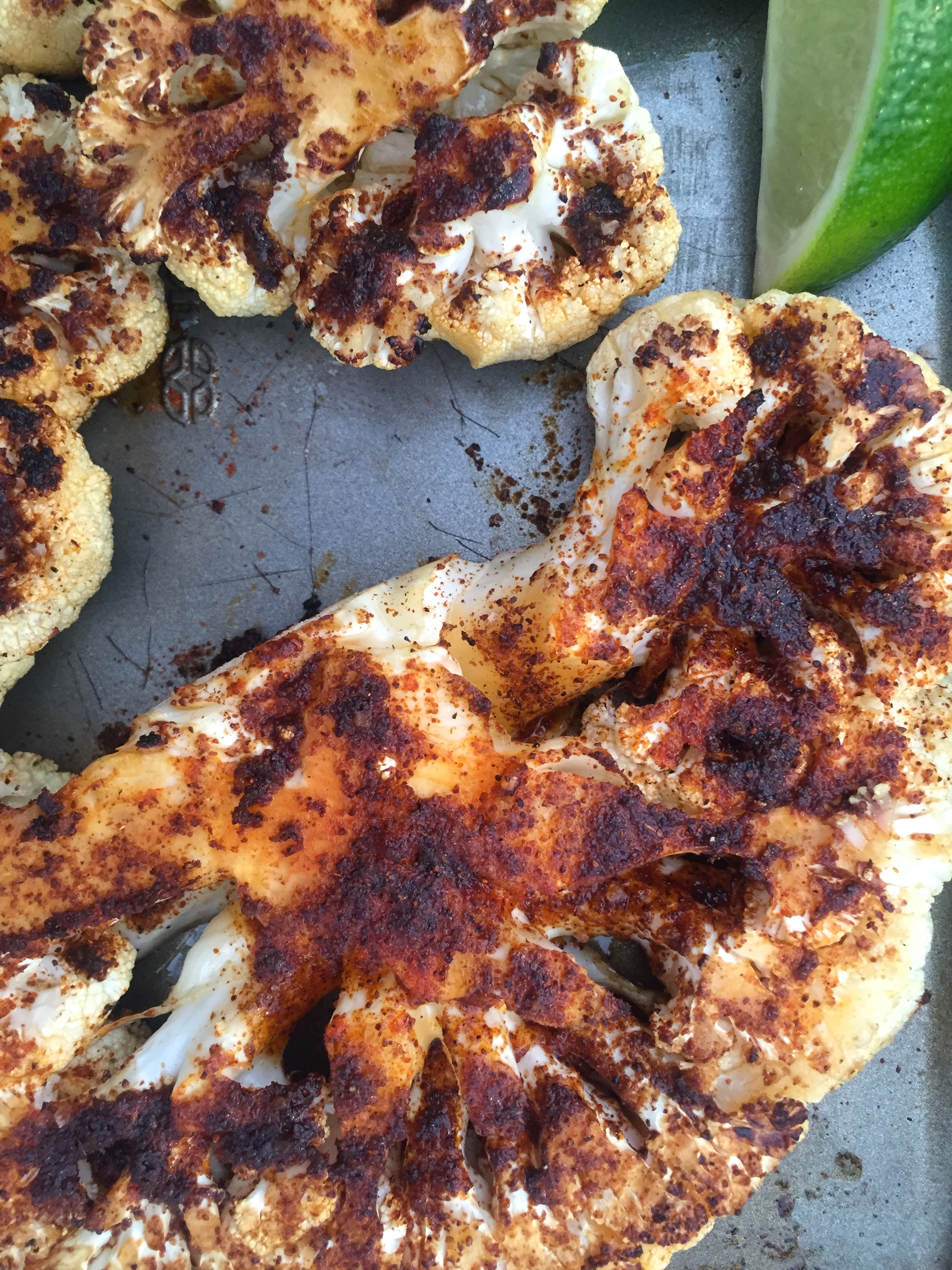Cauliflower might not seem like the most exciting vegetable, but brushed liberally in a olive oil, honey and garlic marinade, topped with a spicy chipotle mixture and then grilled to near-charred perfection, you can transform it into a very impressive dish. Rich with the colors and flavors of paprika, chipotle powder, lime and honey, these cauliflower “steaks” feel fancy enough for a dinner party, yet simple enough for an everyday meal.