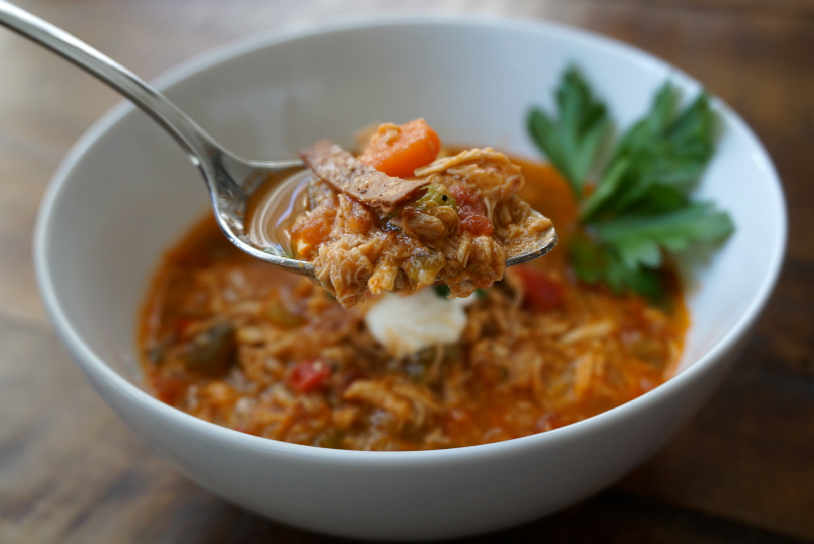 When you want the best of both worlds, then this recipe is for you. You still get all the goodness of a chicken tortilla soup, but in a thicker, heartier chili base. The twist? Add in some roasted green chilies for an unexpected kick.